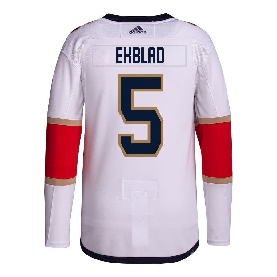 Aaron Ekblad 5 Florida Panthers 2024 STANLEY CUP Final Away Breakaway Jersey – Men, White – JS921