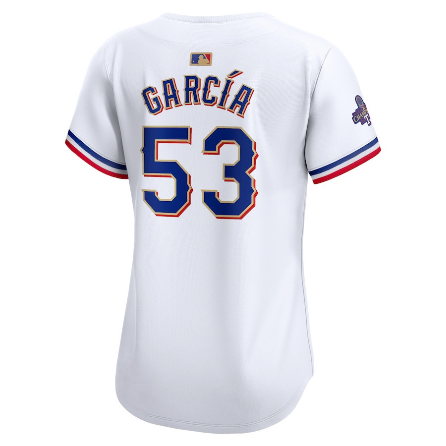 Adolis Garcia 53 Texas Rangers 2024 Gold Collection Limited Jersey – Women White – JS719