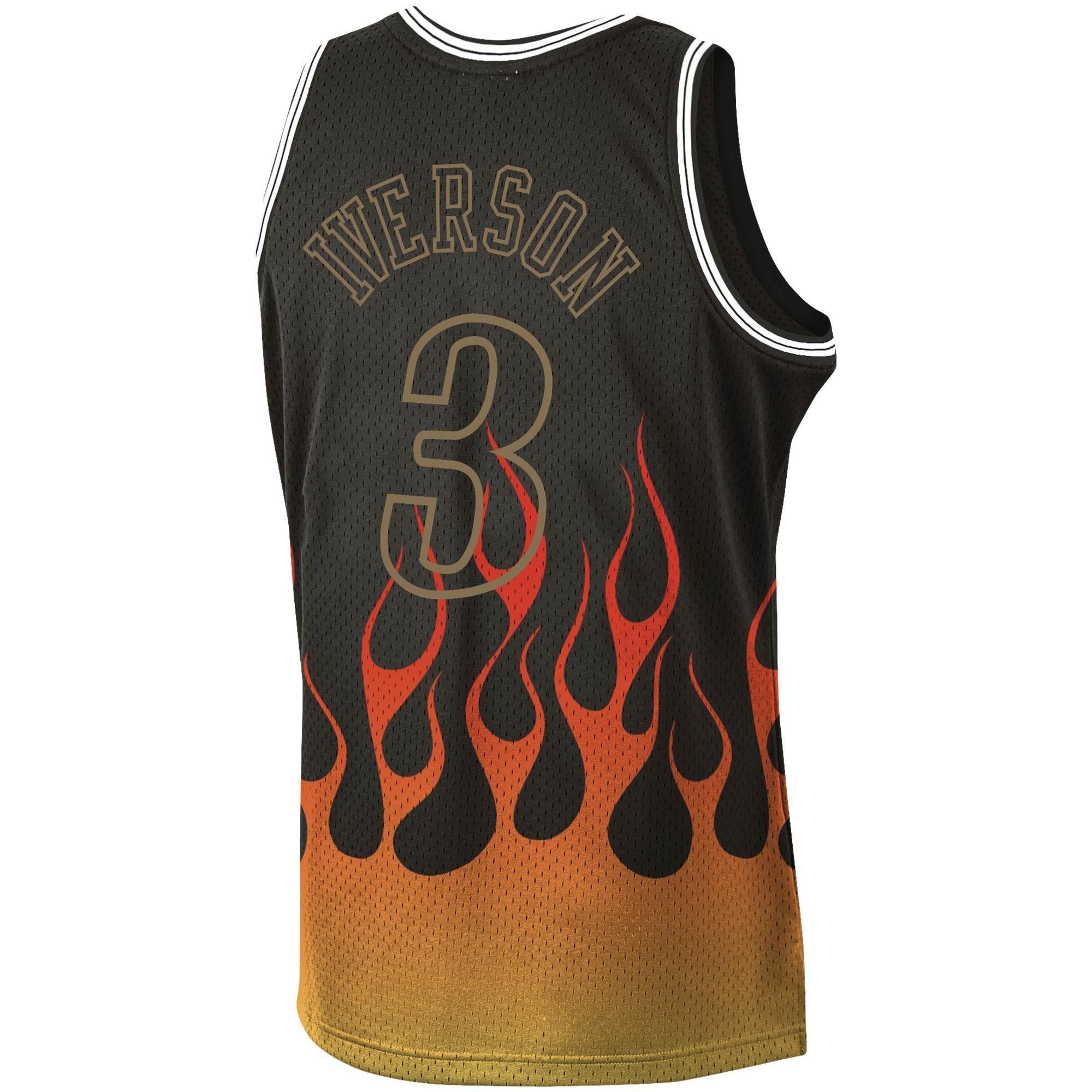 Allen Iverson Philadelphia 76ers Mitchell & Ness 2000-01 Hardwood Classics Flames Swingman Jersey – Black – JS598