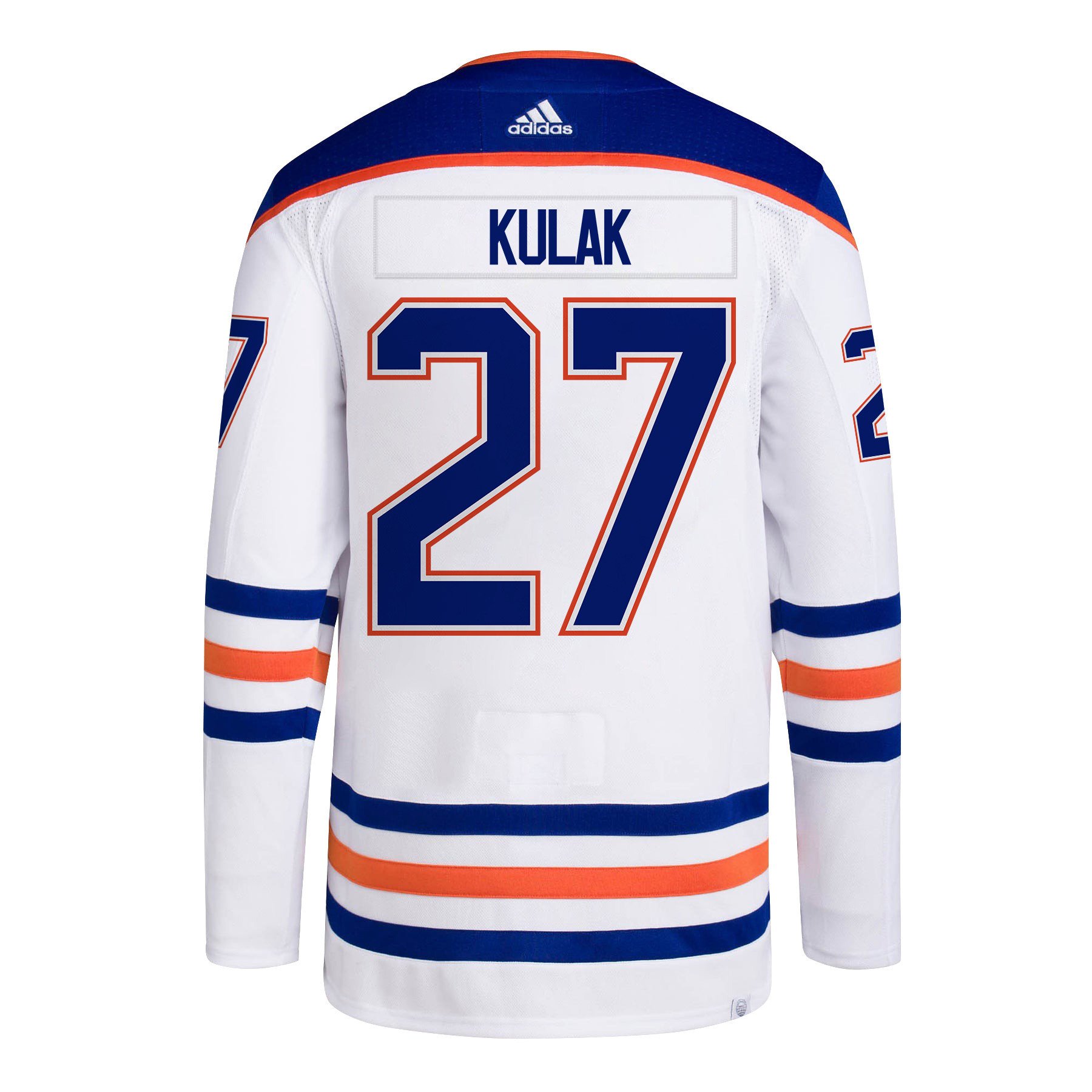Brett Kulak 27 Edmonton Oilers 2024 NHL Playoffs Patch Away Jersey – Men, White – JS166