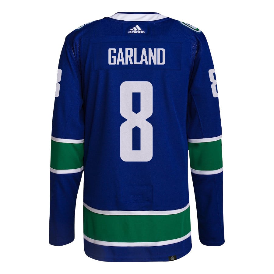 Conor Garland 8 Vancouver Canucks 2024 NHL Playoffs Patch Home Jersey – Men, Blue – JS283