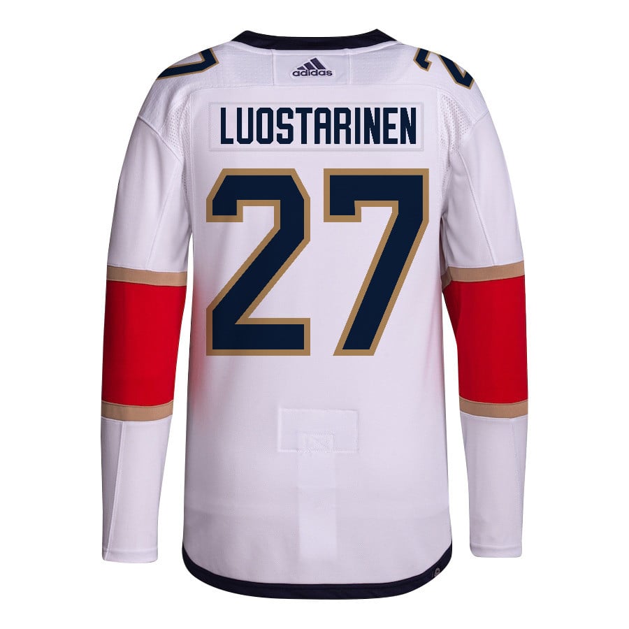 Eetu Luostarinen 27 Florida Panthers 2024 NHL Playoffs Patch Away Jersey Customized – Men, White – JS547