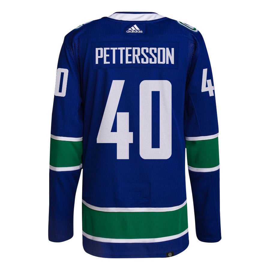 Elias Pettersson 40 Vancouver Canucks 2024 NHL Playoffs Patch Home Jersey – Men, Blue – JS707