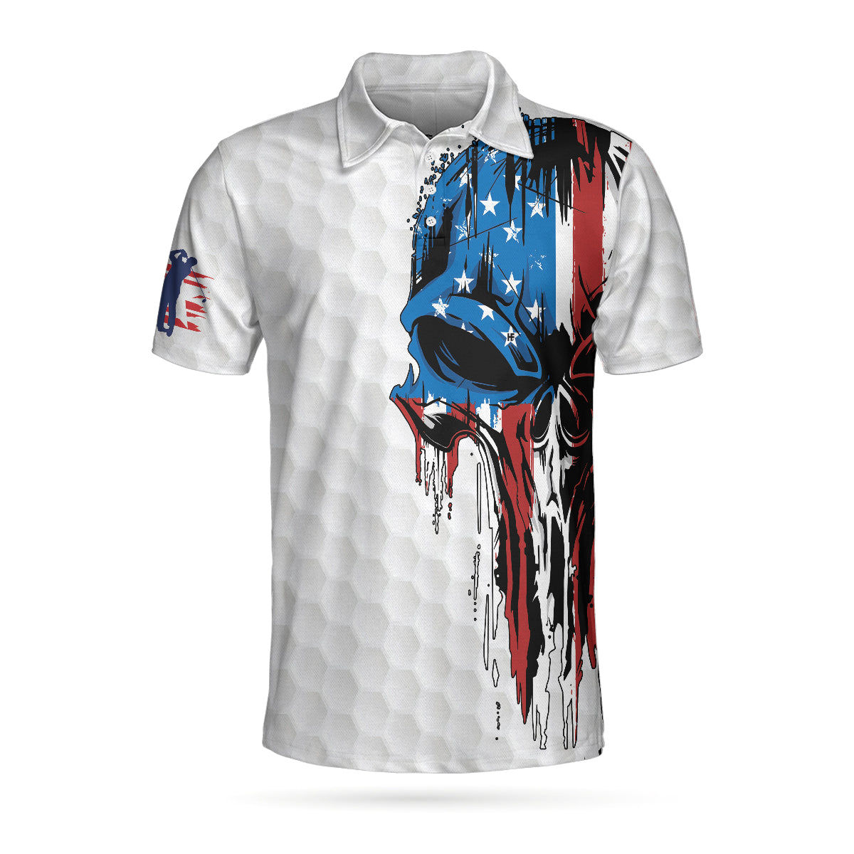 Golf American Flag Polo Shirt, Patriot White Golf Pattern Wet Paint Skull Polo Shirt, Patriotic Golf Shirt For Men