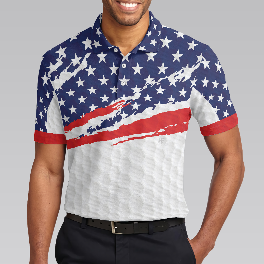 Golf Texture Short Sleeve USA Golf Polo Shirt, American Flag Polo Shirt, Patriotic Golf Shirt For Men
