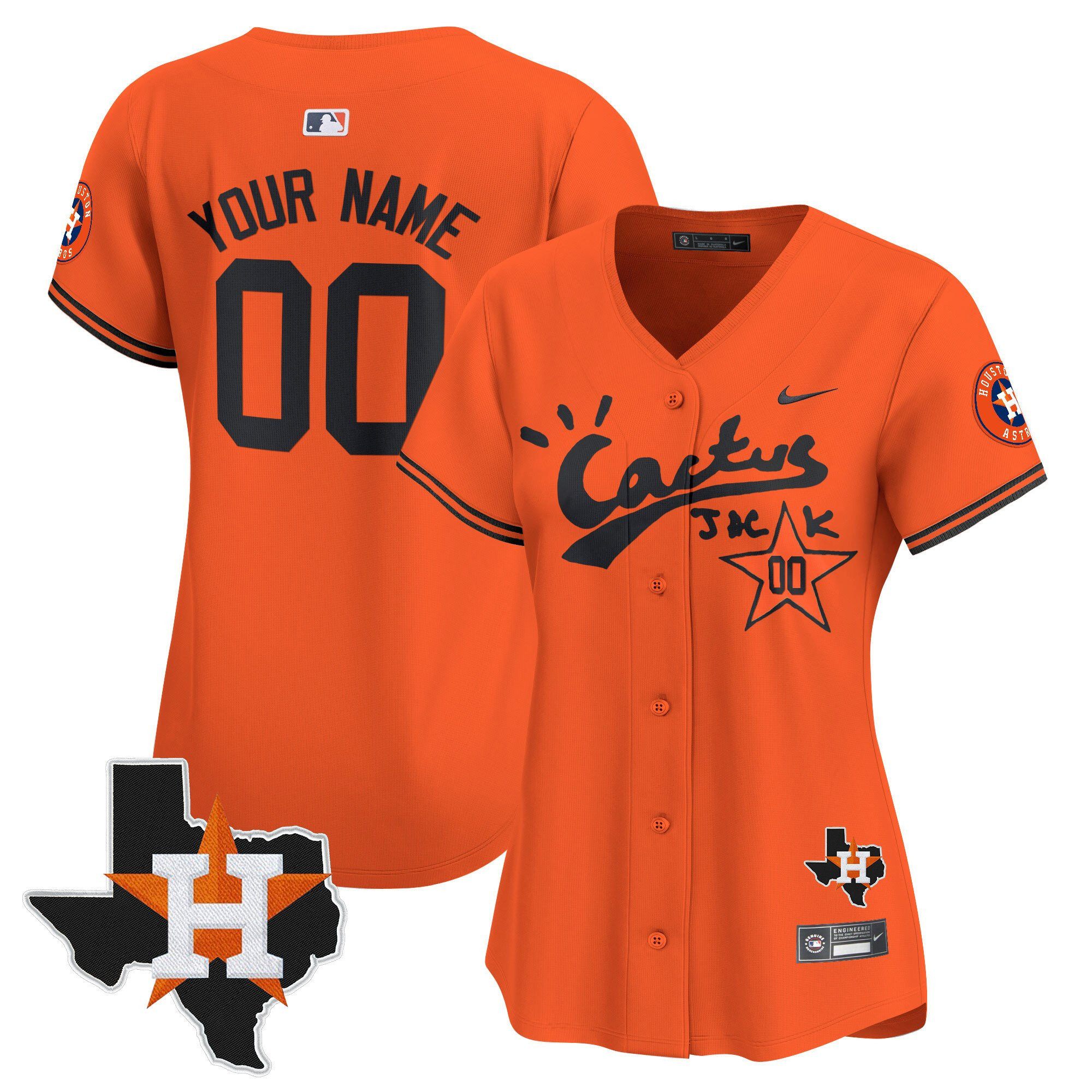 Houston Astros Cactus Jack Houston Patch Customized Limited Women Jersey