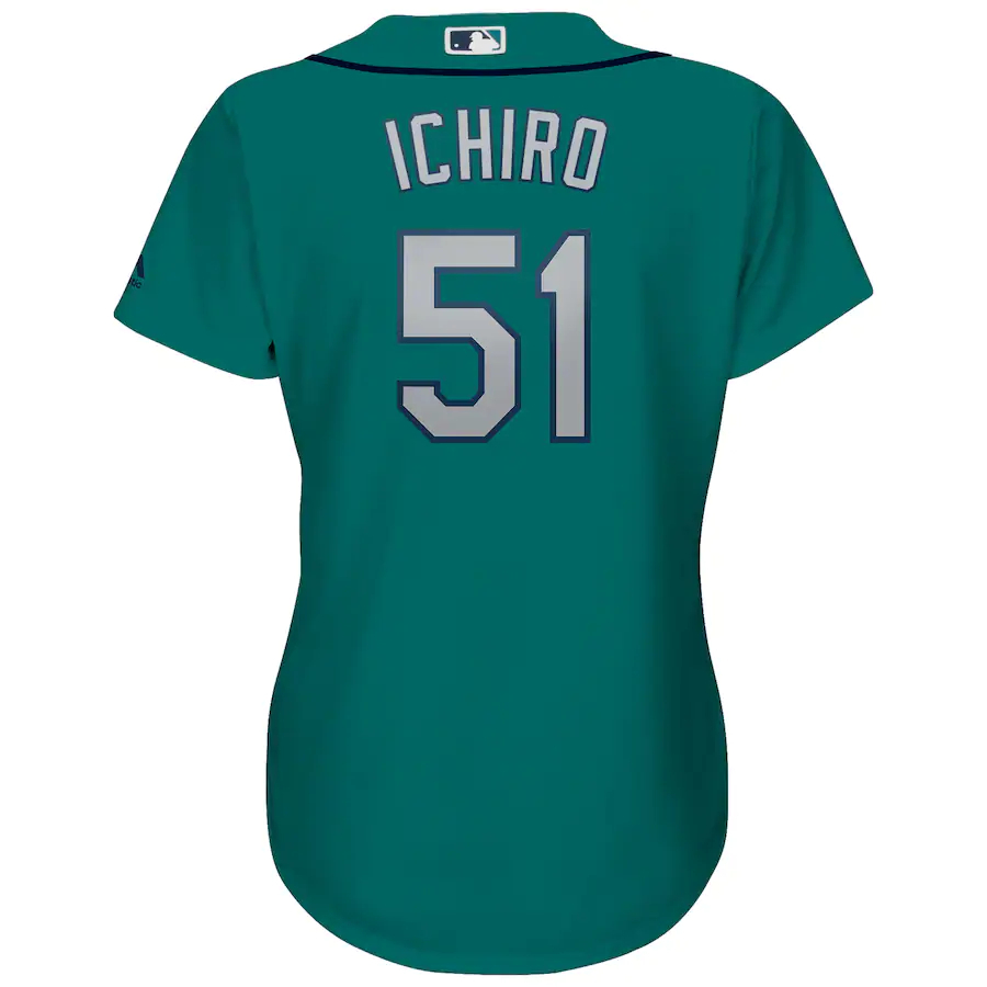 Ichiro Suzuki Seattle Mariners Majestic Women’s Cool Base Player Jersey – Aqua