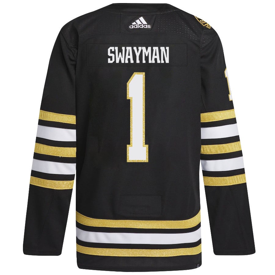 Jeremy Swayman 1 Boston Bruins 2024 NHL Playoffs Patch Home Jersey – Men, Black – JS591