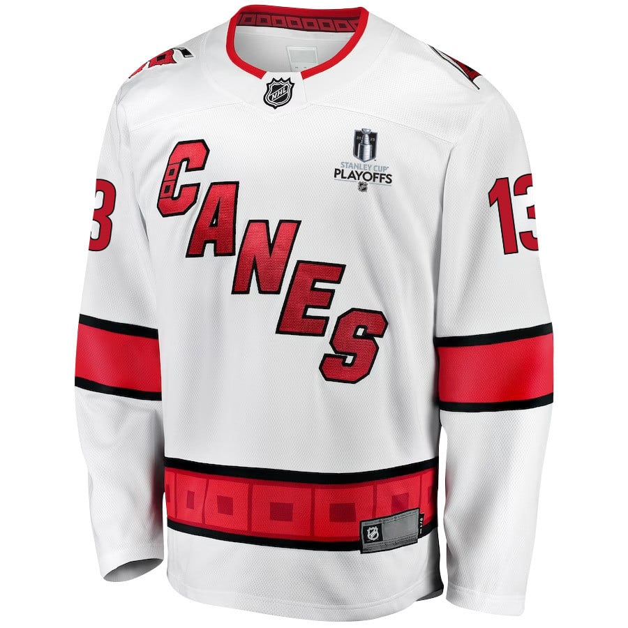 Jesse Puljujarvi 13 Carolina Hurricanes Stanley Cup 2023 Playoffs Patch Away Breakaway Men Jersey – White – JS651
