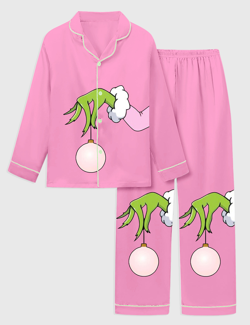 Kid’s Pink Christmas Grinch Satin Family Pajama Set
