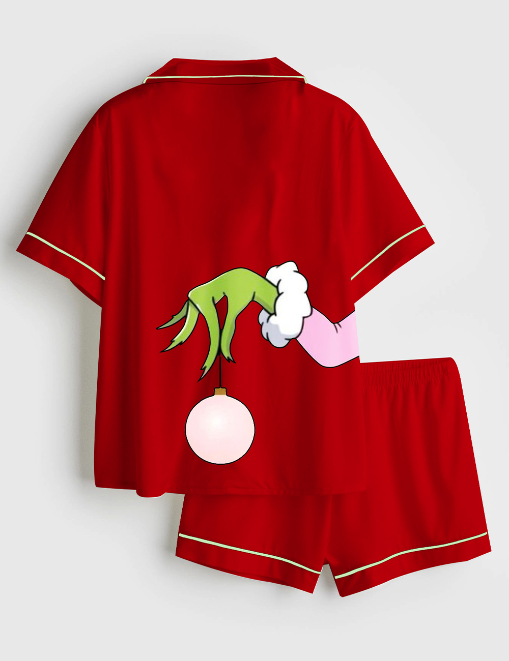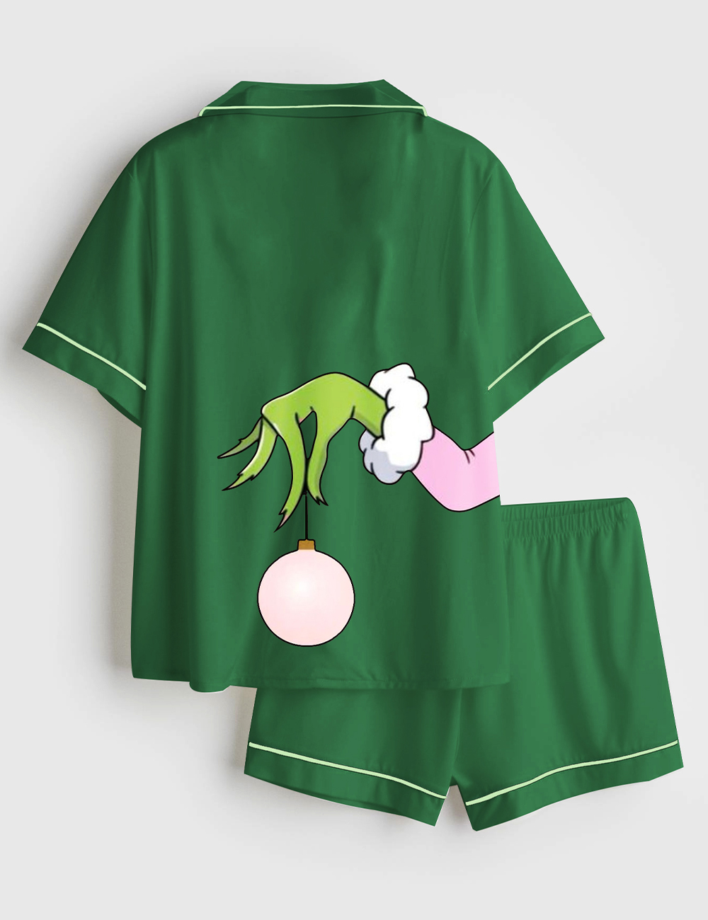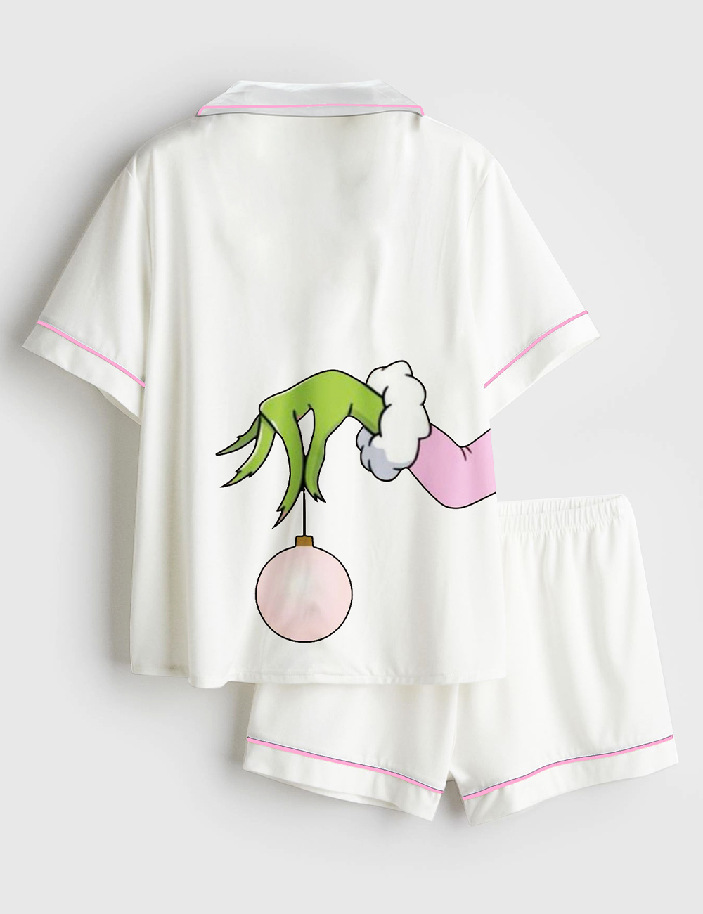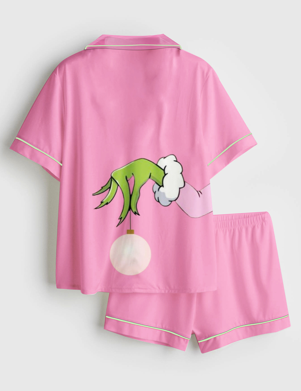 Men’s Pink Christmas Grinch Short Sleeve Satin Family Pajama Set