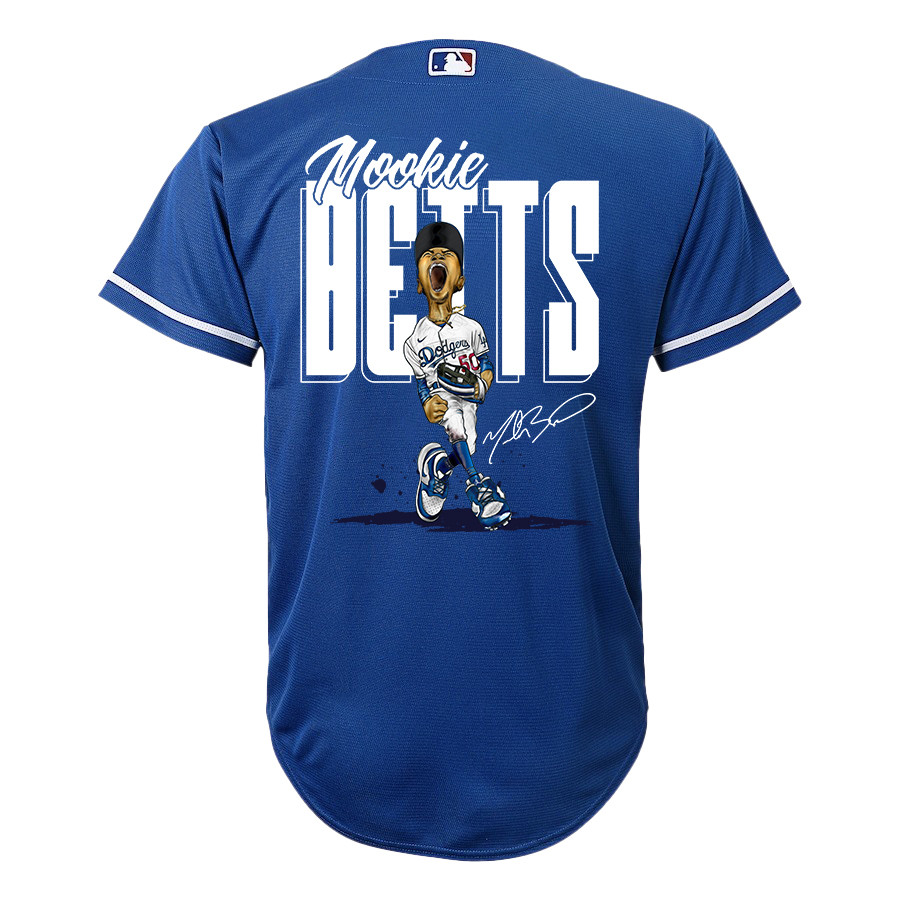 Mookie Betts 50 Los Angeles Dodgers Signed Cartoon 2023 Alternate Player YOUTH Jersey – Royal