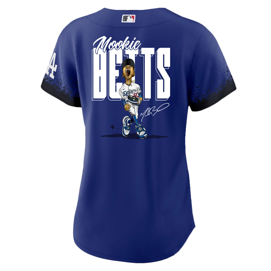 Mookie Betts 50 Los Angeles Dodgers Signed Cartoon 2023 City Connect Player Women Jersey – Royal
