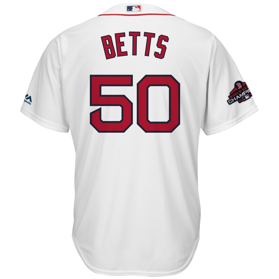 Mookie Betts Boston Red Sox Majestic 2018 World Series Champions Team Logo Player Jersey – White