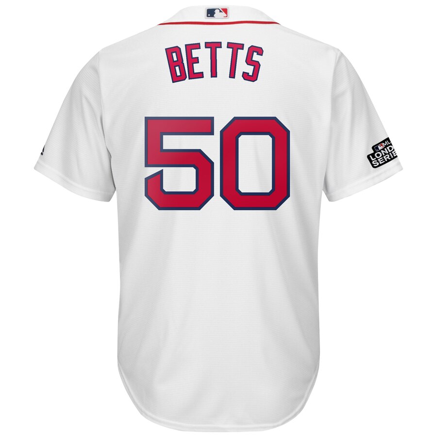 Mookie Betts Boston Red Sox Majestic 2019 London Series Cool Base Player Jersey – White