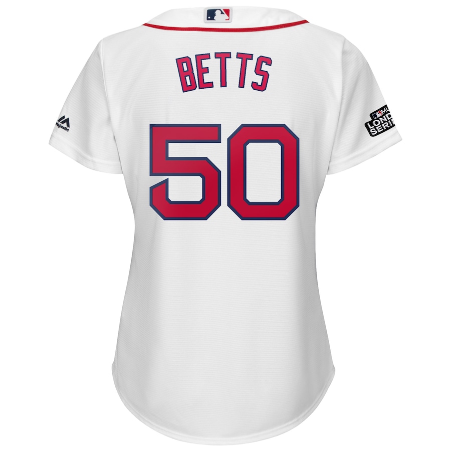 Mookie Betts Boston Red Sox Majestic Women’s 2019 London Series Cool Base Player Jersey – White