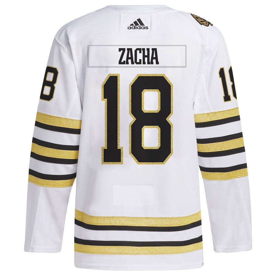 Pavel Zacha 18 Boston Bruins 2024 NHL Playoffs Patch Away Jersey – Men, White – JS834