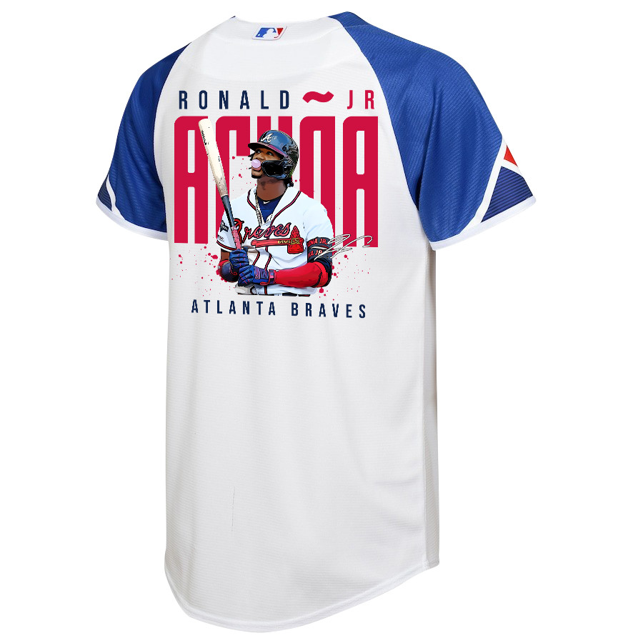 Ronald Acuña Jr. 13 Atlanta Braves Signed Gum 2023 City Connect Player YOUTH Jersey – White Blue – JS767