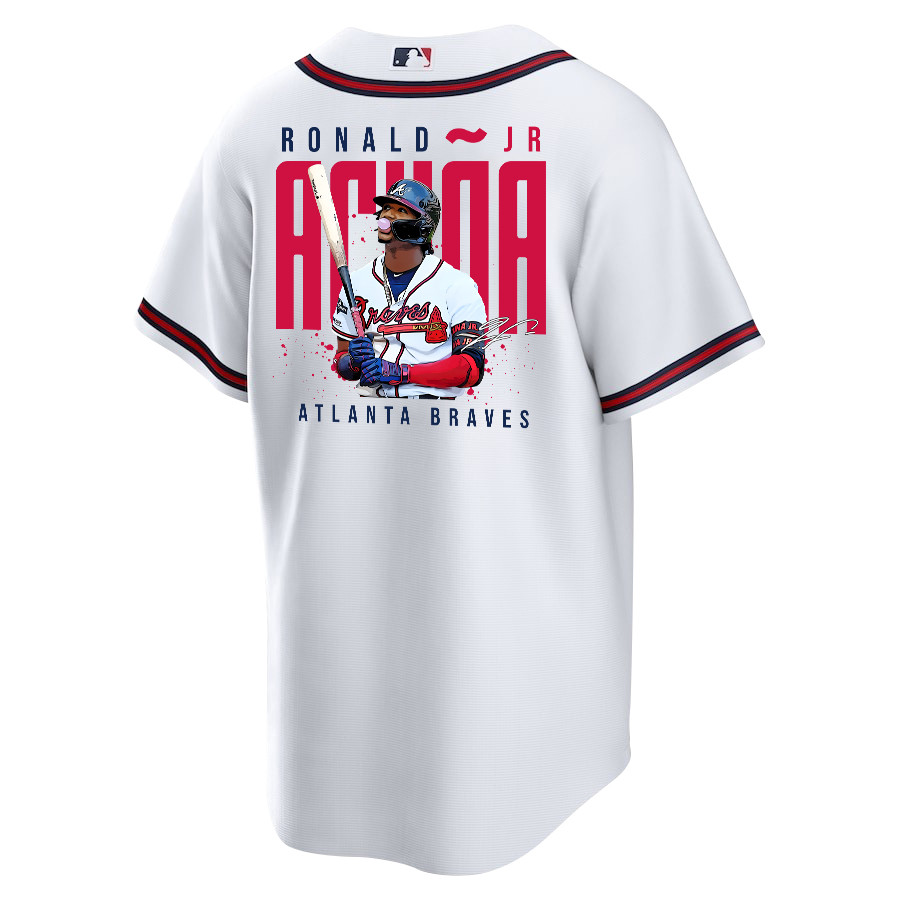 Ronald Acuña Jr. 13 Atlanta Braves Signed Gum 2023 Home Player Men Jersey – White Red – JS531