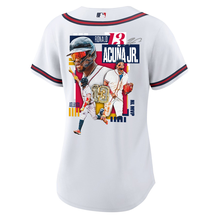 Ronald Acuña Jr. 13 Atlanta Braves Signed MVP 2023 Home Player Women Jersey – White Red – JS936