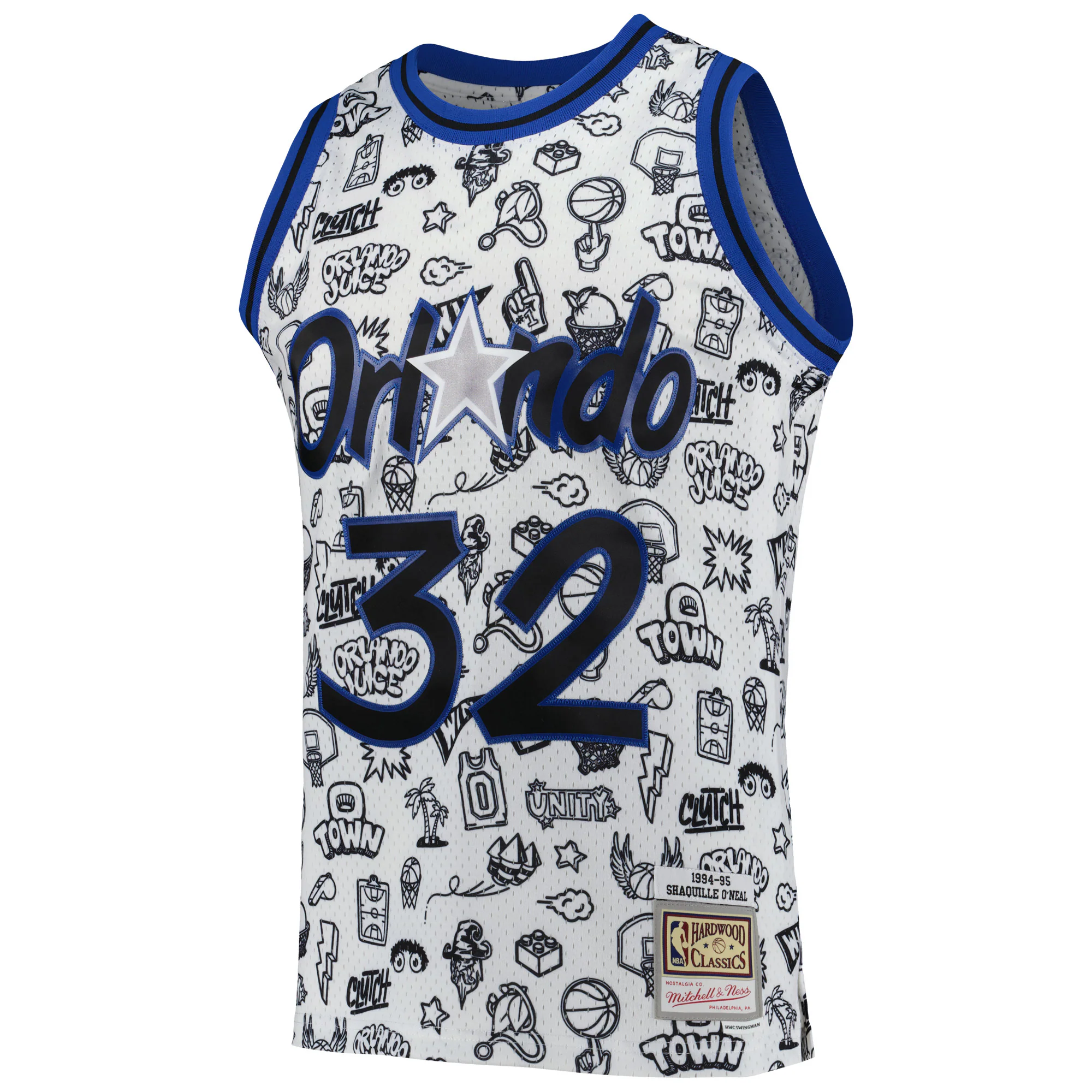 Shaquille O’neal Orlando Magic Mitchell & Ness 1994/95 Hardwood Classics Doodle Swingman Player Jersey – White