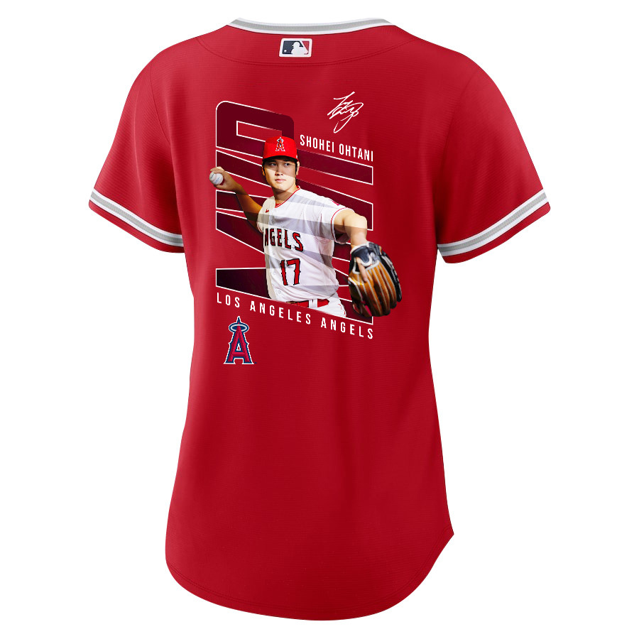 Shohei Ohtani 17 Los Angeles Angels Signed Logo 2023 Alternate Player Women Jersey – Red