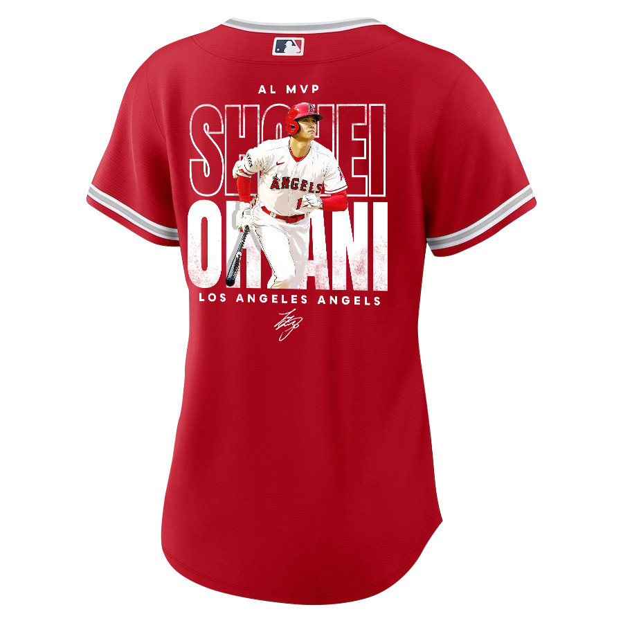 Shohei Ohtani 17 Los Angeles Angels Signed Name 2023 Alternate Player Women Jersey – Red