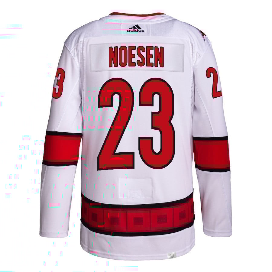 Stefan Noesen 23 Carolina Hurricanes 2024 NHL Playoffs Patch Away Jersey – Men, White – JS827