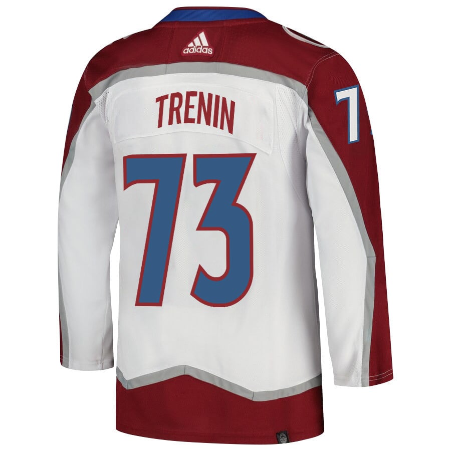Yakov Trenin 73 Colorado Avalanche 2024 NHL Playoffs Patch Away Jersey – Men, White – JS300